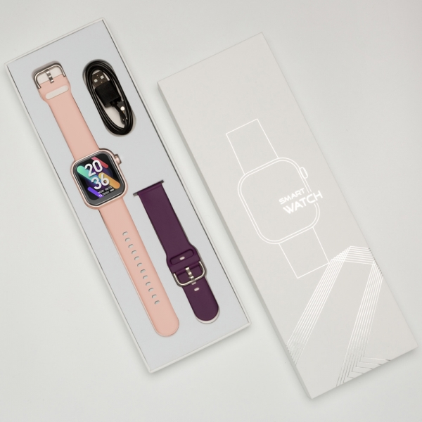Тип устройства: Смарт-часы. Год выпуска: 2021. Габариты: 43х43х12 мм. Цвет: Серый, розовое золото. Дисплей. Шагомер. Пульсометр. Гироскоп.